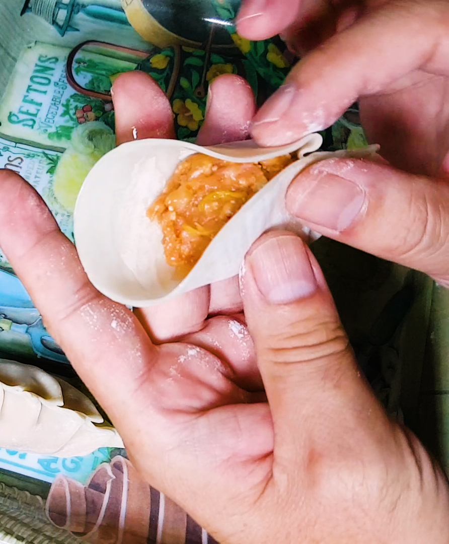 Since I was roped into it, I decided to cautiously reveal my own special method for folding mandu.