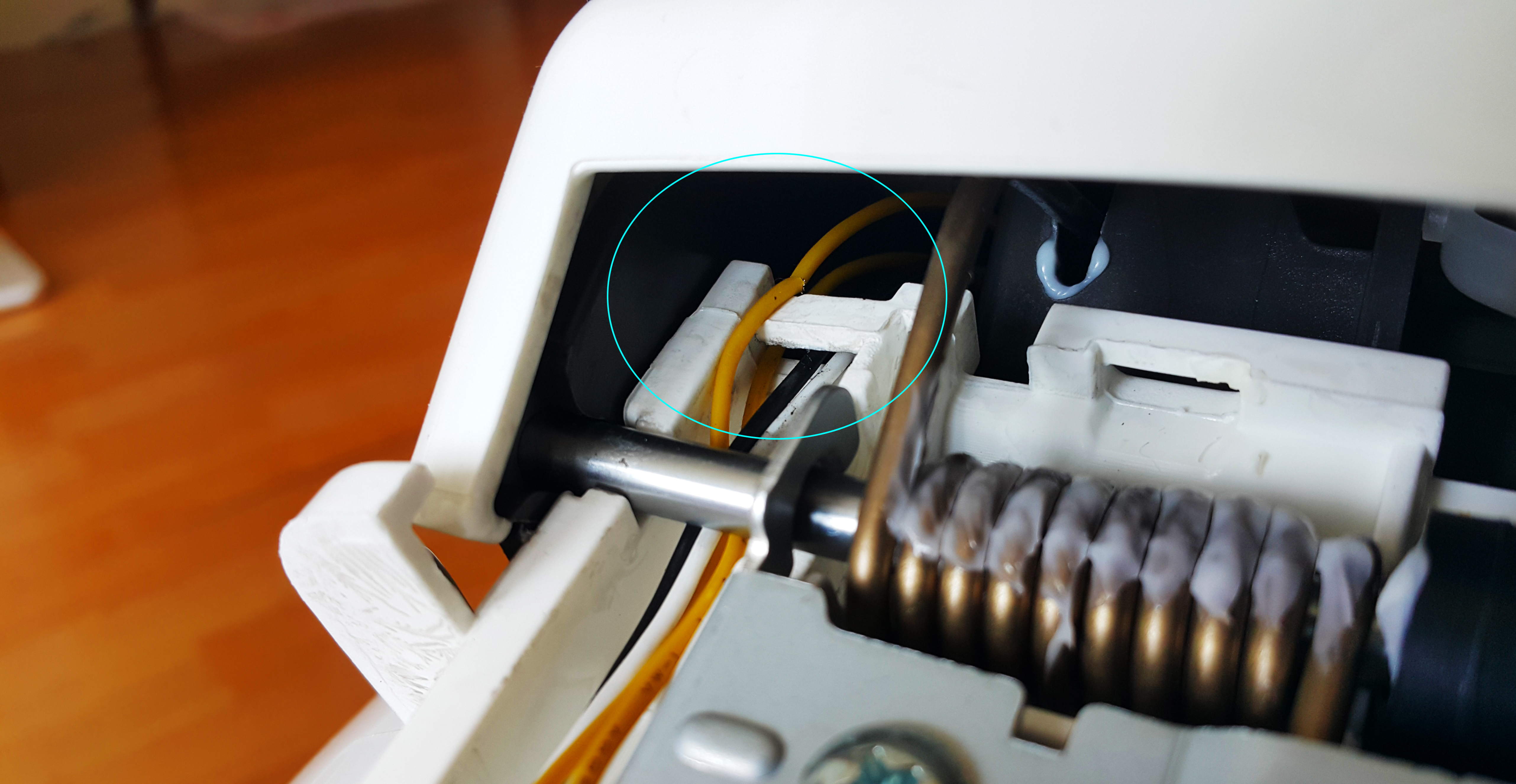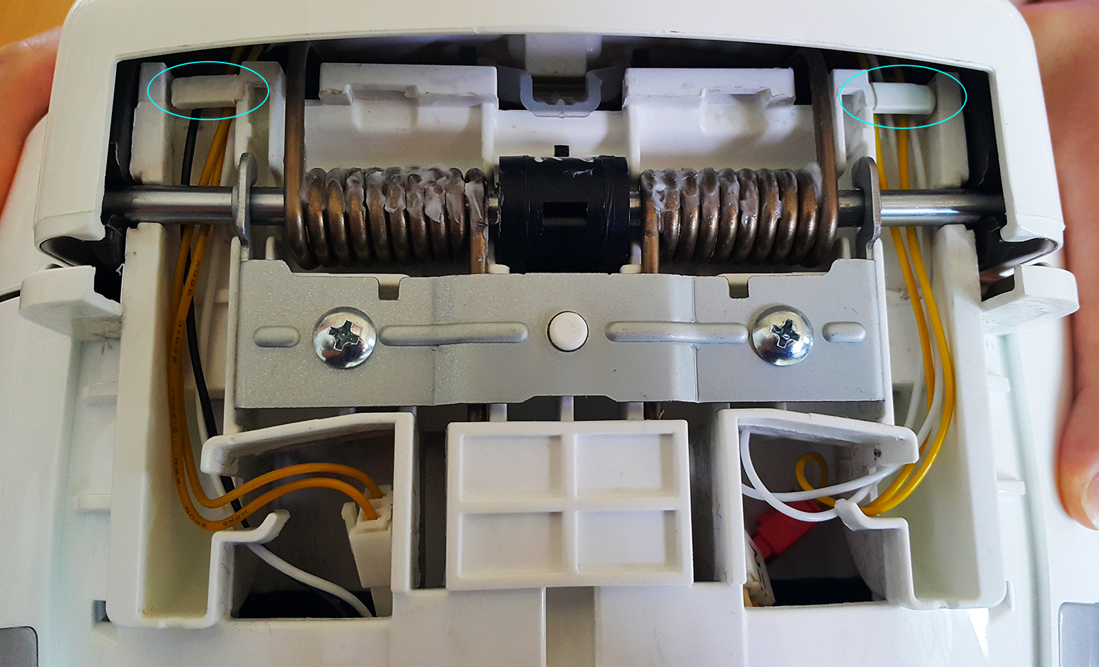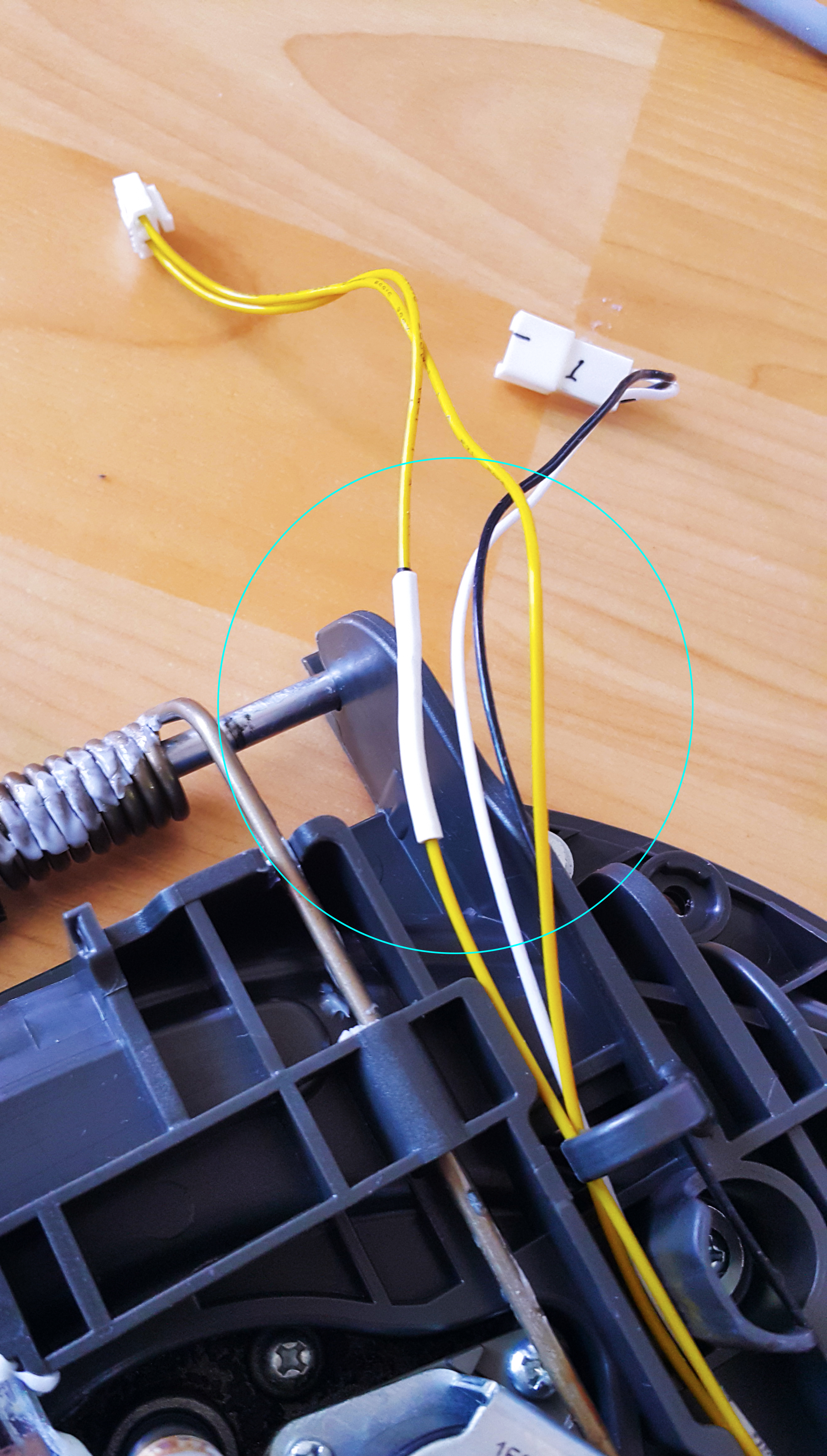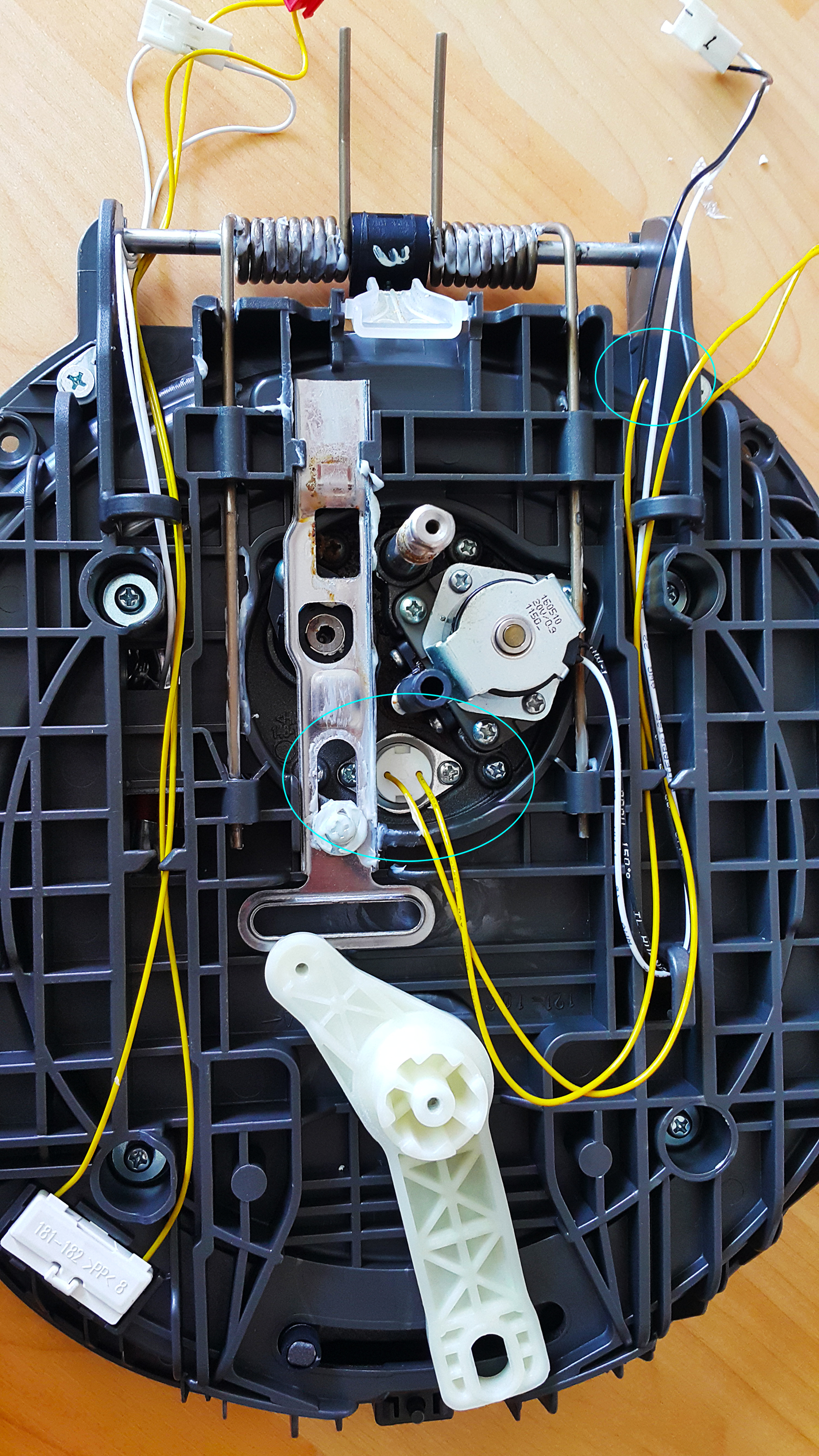 To get a better look and perform the repair, I had to disassemble the entire lid assembly. A closer look confirmed my initial diagnosis: the wire connected to the bimetal switch had snapped.