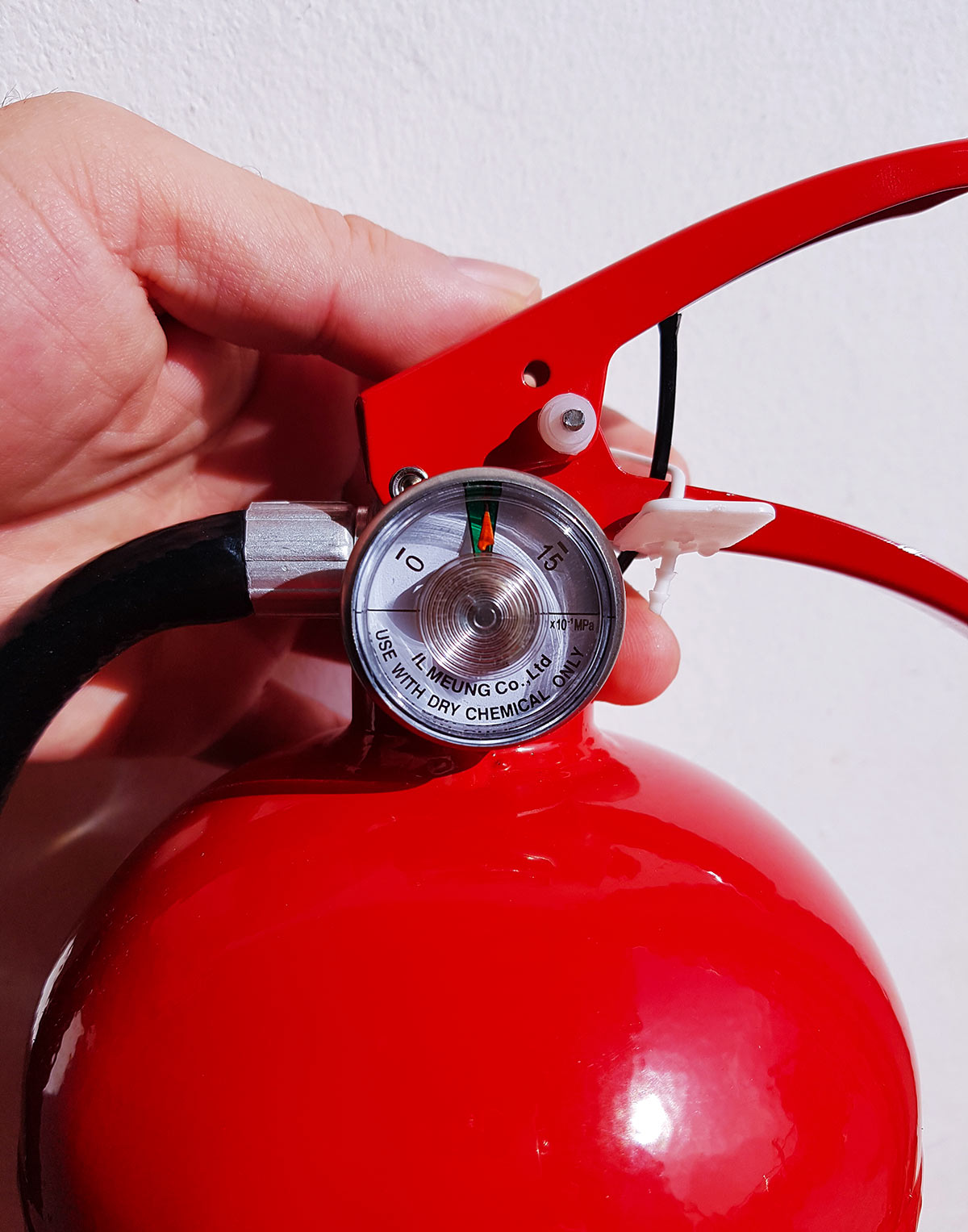 3. The Secret Move (Most Important!): This is what most people miss. The powder inside the extinguisher can settle and harden over time like old cement. If that happens, it won’t spray, even if the pressure is fine.