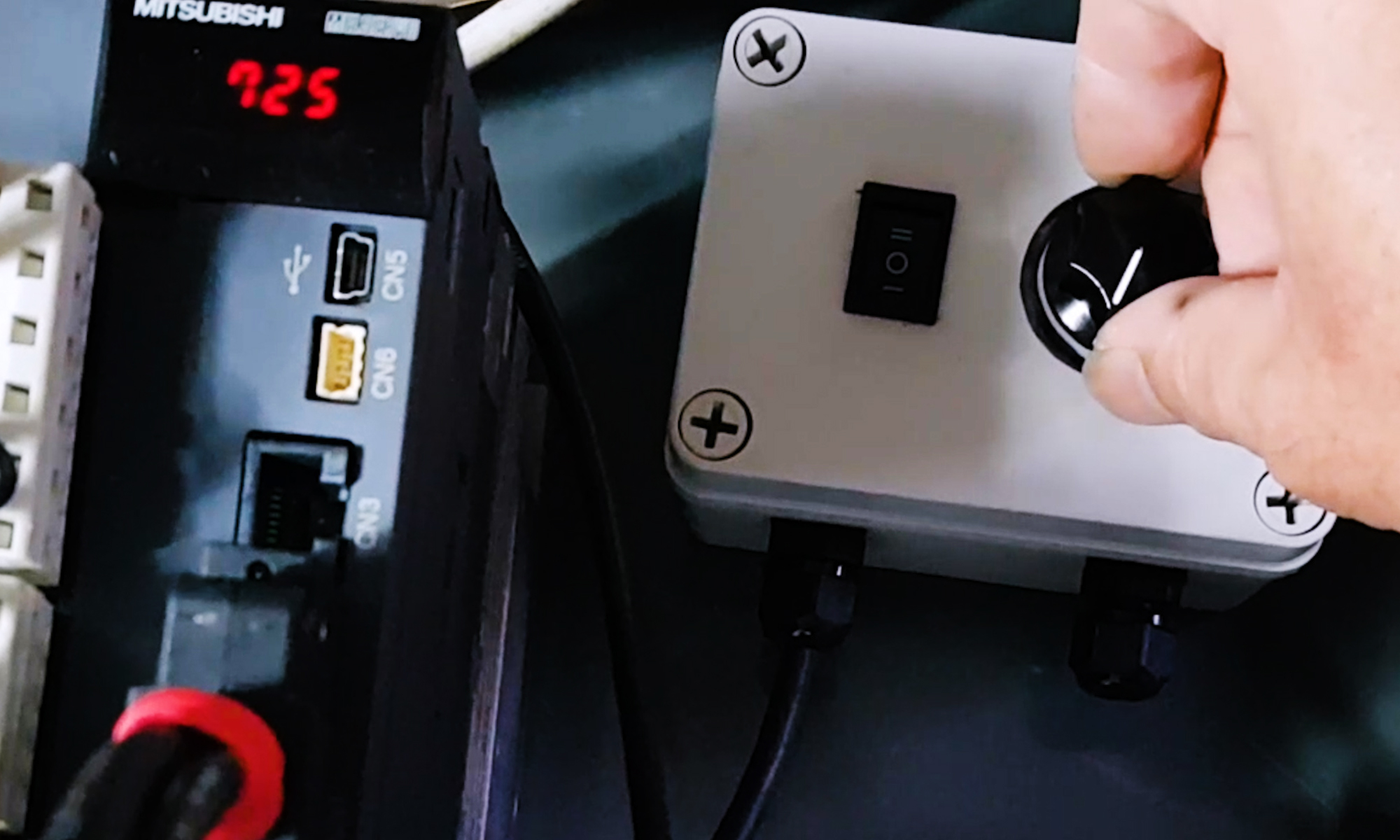 Second, you need to control the motor. I use a simple speed controller I made with a switch and a potentiometer for forward/reverse rotation and RPM control. With that, the preparations are complete.