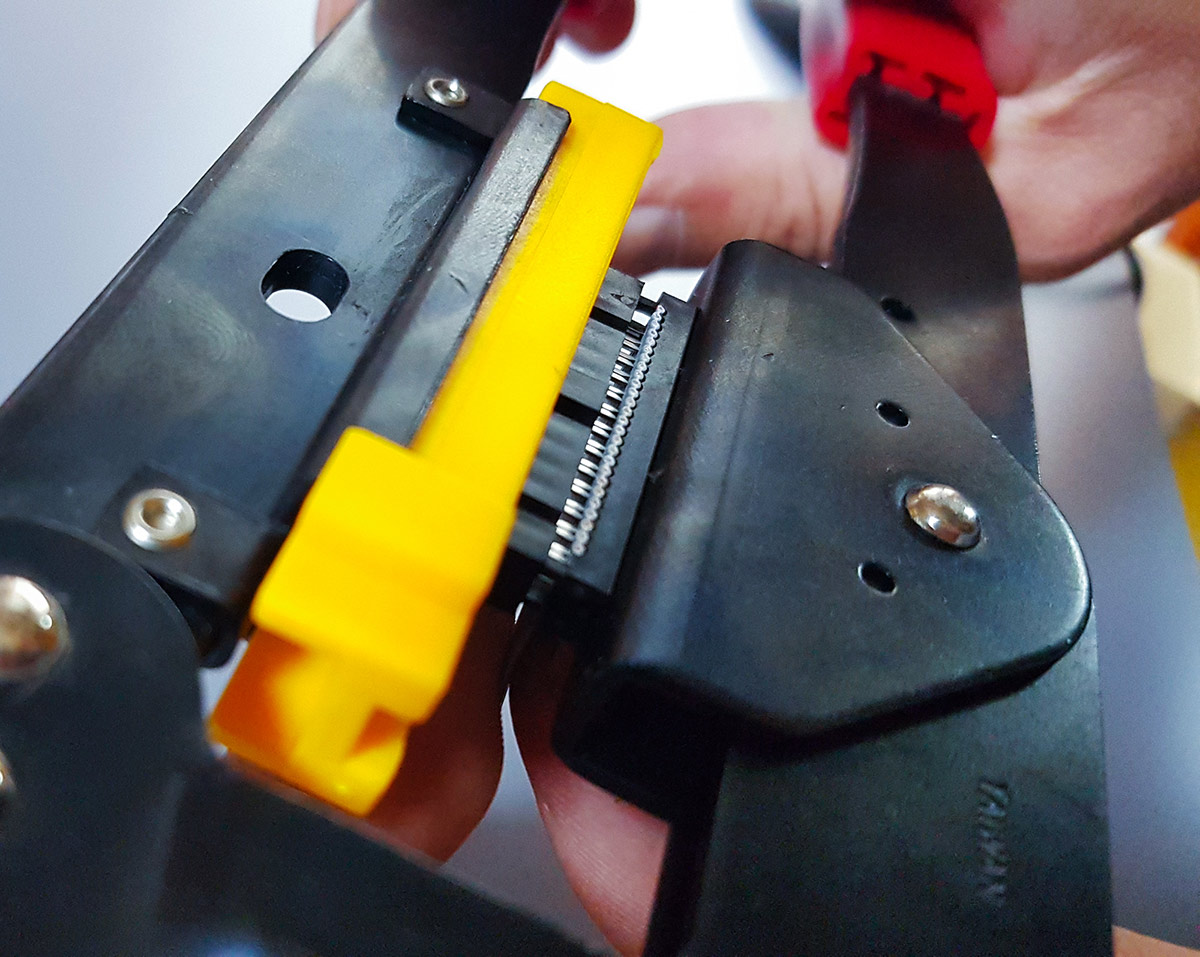 Place the assembled connector into the crimping tool. The tool has a recess that fits the raised key on the connector body. Squeeze the handle firmly until it stops. The tool will apply perfect, even pressure, pushing the sharp contacts through the cable’s insulation and making a solid connection with each wire.