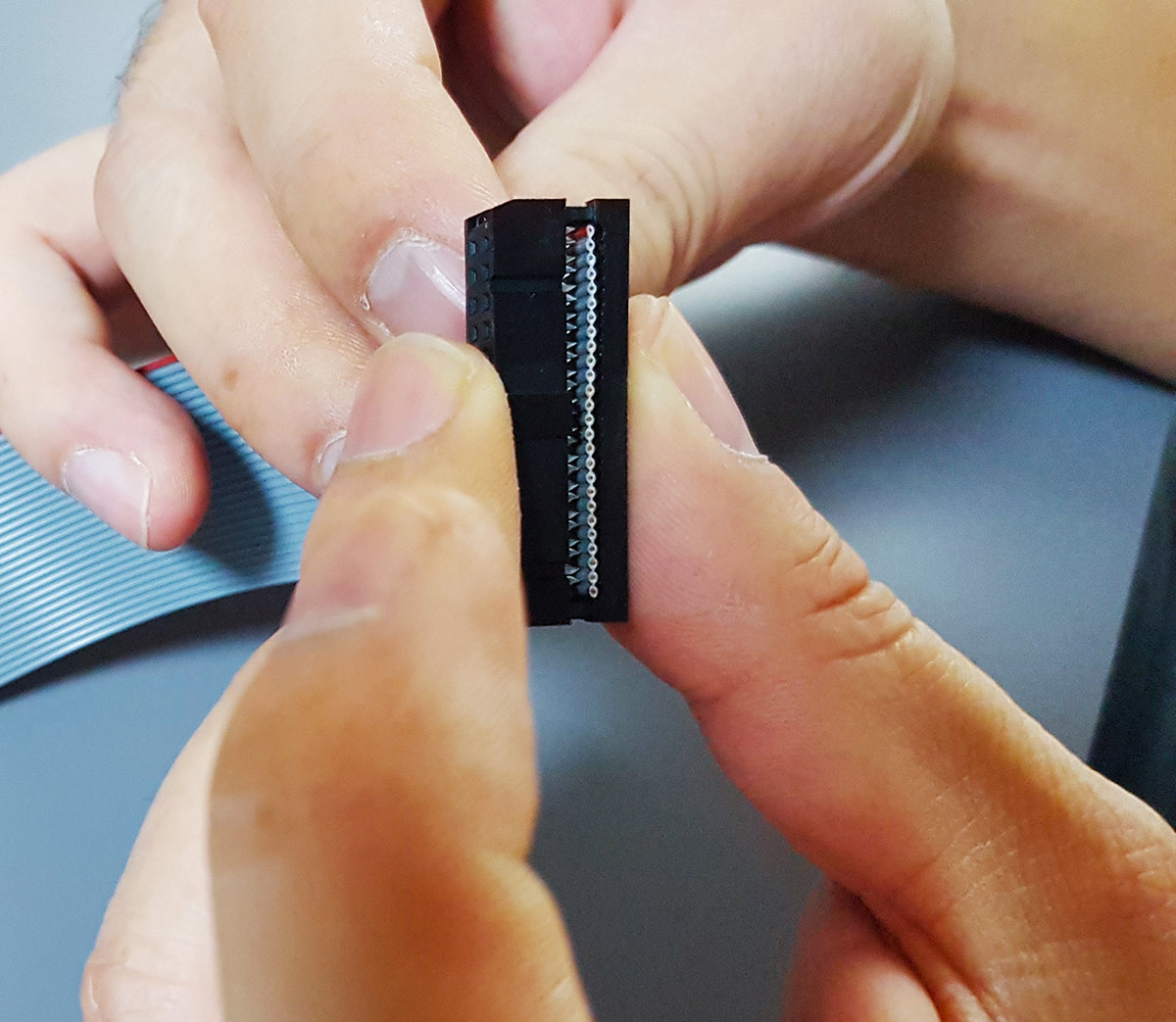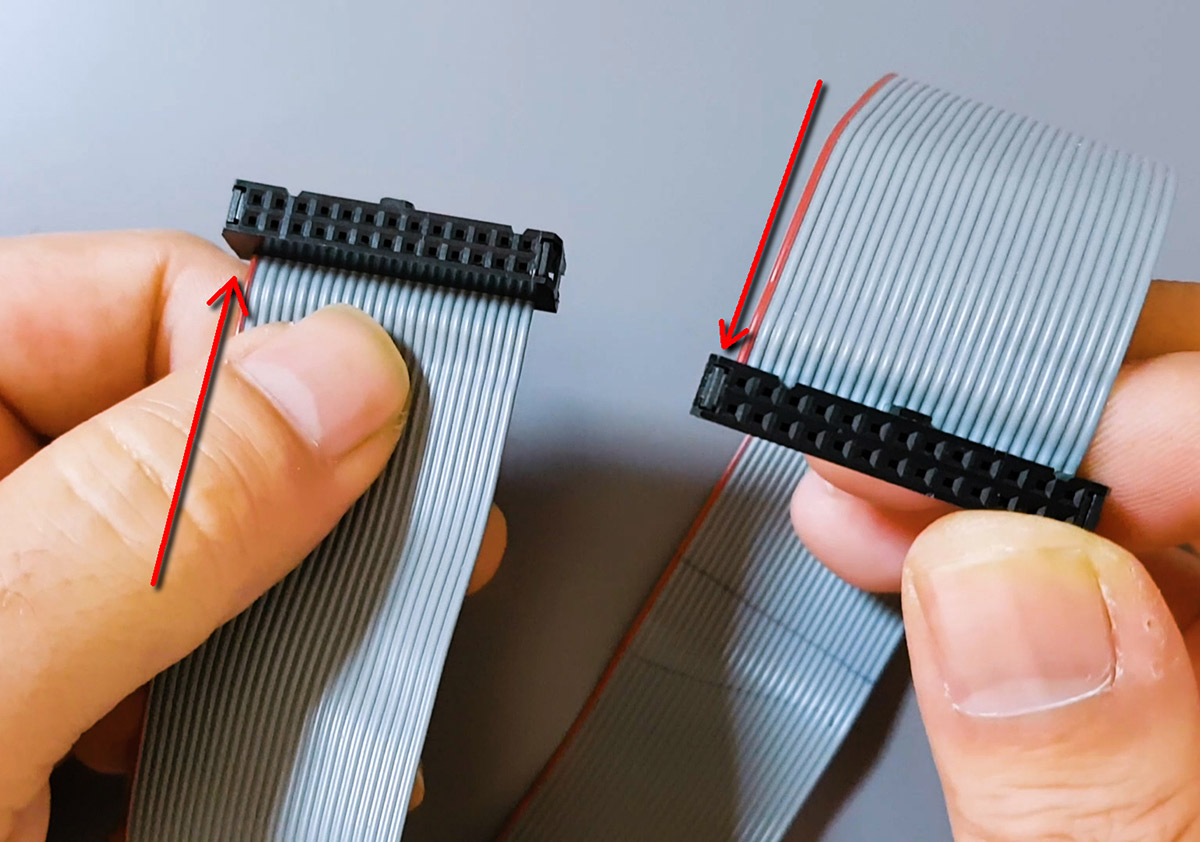 First, Wire 1 on most gray ribbon cables is marked with a red stripe. This is your universal guide. (On rainbow-colored cables, the brown wire is Wire 1, following the resistor color code.)