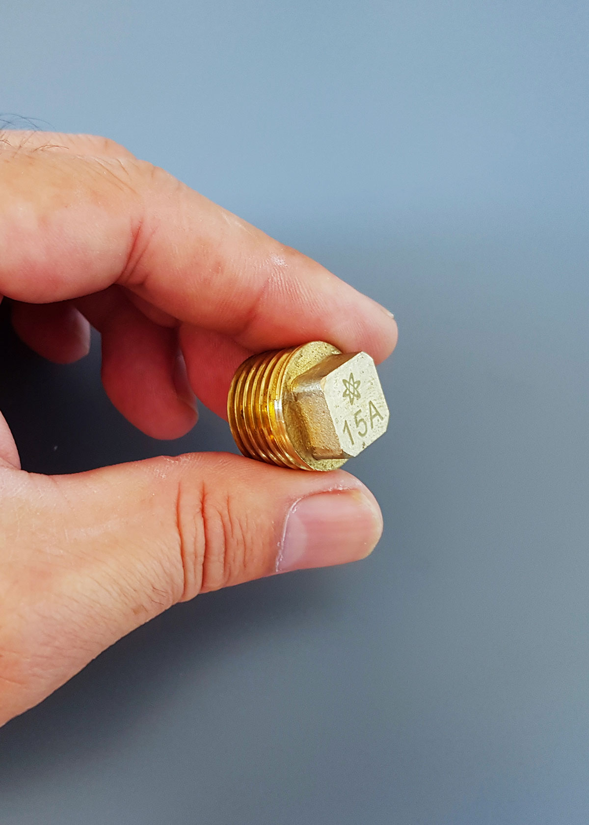 So, what do you use to cap the open pipe? The common solution is a brass “pipe plug,” often with a square head. They look like this: