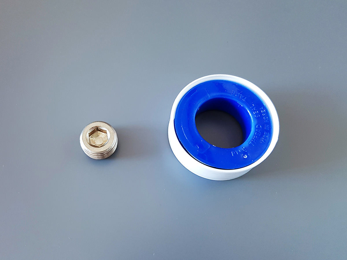 Step 1: Get Your Parts You need your threaded plug (e.g., 1/2″ NPT Stainless Hex Plug) and Teflon tape (thread seal tape).