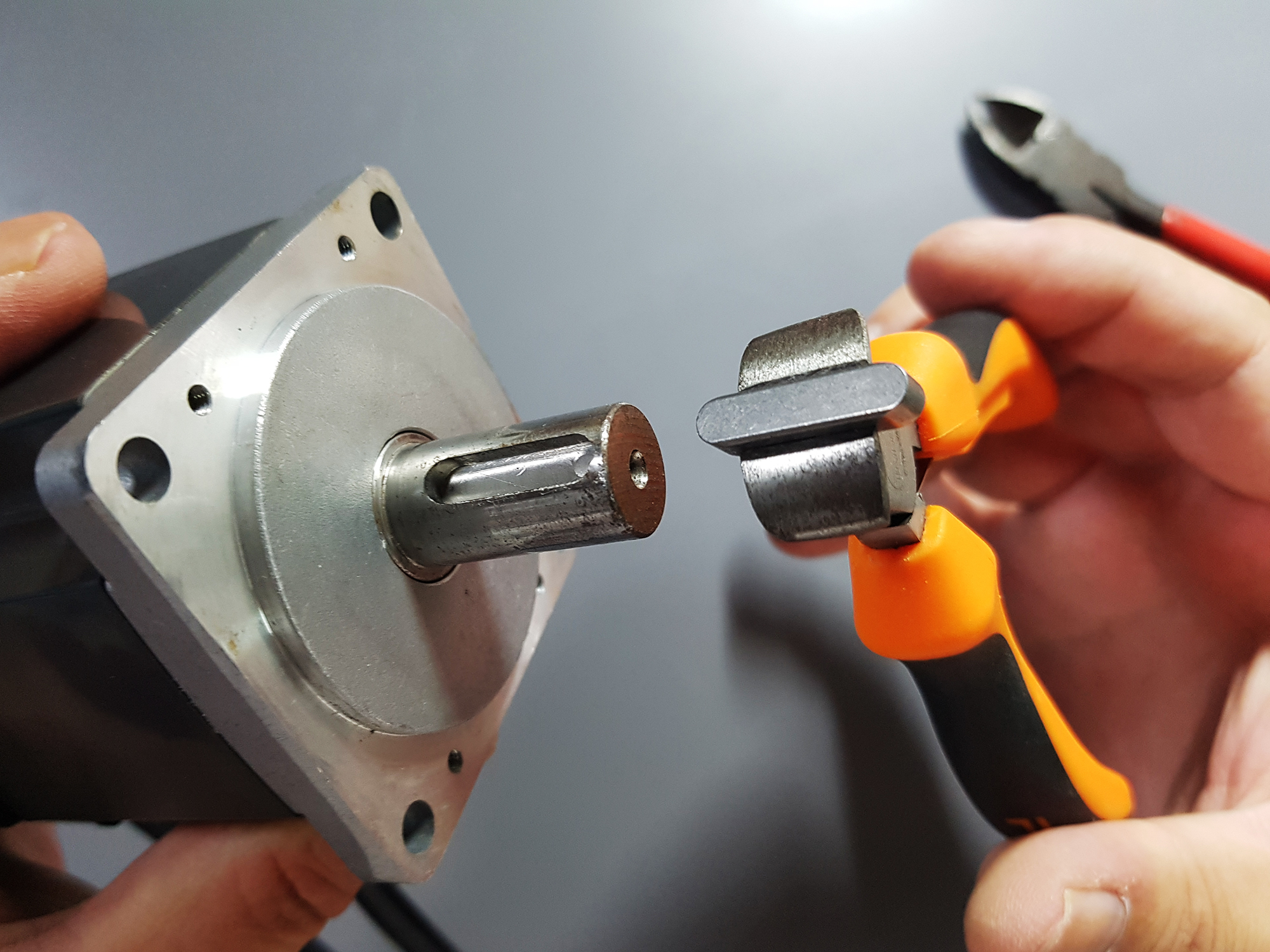 2. Grip the side of the parallel key firmly with the very tip of the pliers.
