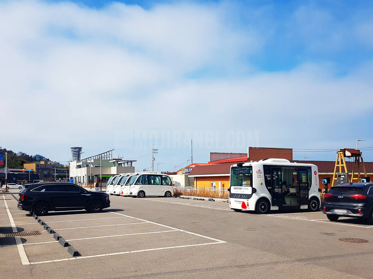 After our meal, we spotted a self-driving shuttle near the parking lot, a free trial service for the public. Unfortunately, it was down for maintenance the day we visited.